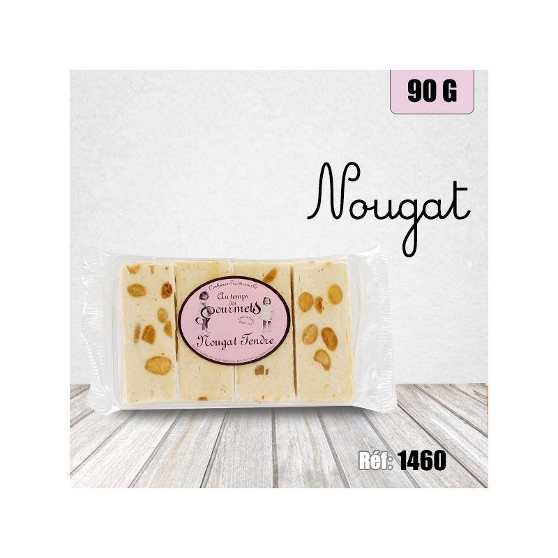Ingrédients : Sucre, sirop de glucose, amandes 15 %, miel 3 %, pain azyme (fécule de pomme de terre, eau, huile d'olive), albumine d'œuf, arôme naturel de vanille.