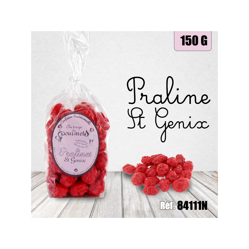 Proposé en sachet de 150g par Au Temps des Gourmets, nos Pralines Saint Genix de couleur rouge/rose sont de savoureuses amandes enveloppées de sucre caramélisé. Un conseil ? Incorporez-les dans une brioche ou encore un tarte, c’est un délice.